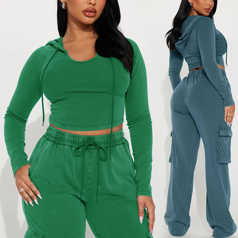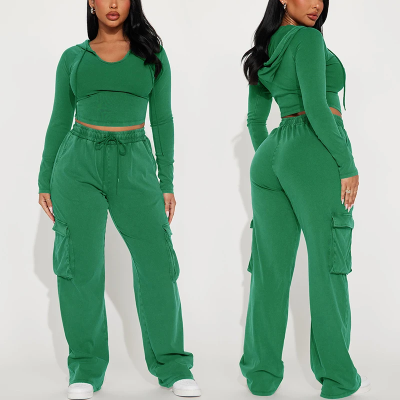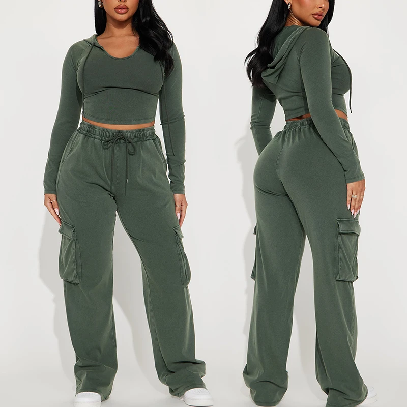 Huili Custom Logo High Stretch Tow Piece Crop Top & Sweatpants OEM Skinny Tracksuits Fitness Joggers 2 Sets Outfits for Women